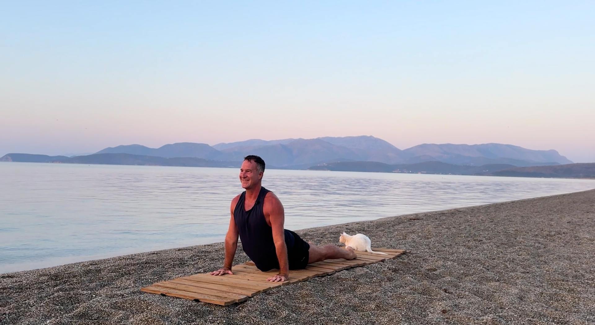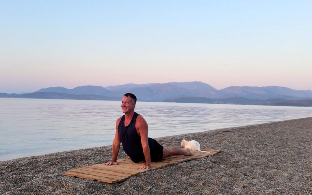 yoga for energy with yogi aaron greece beach 13 upward facing dog pose