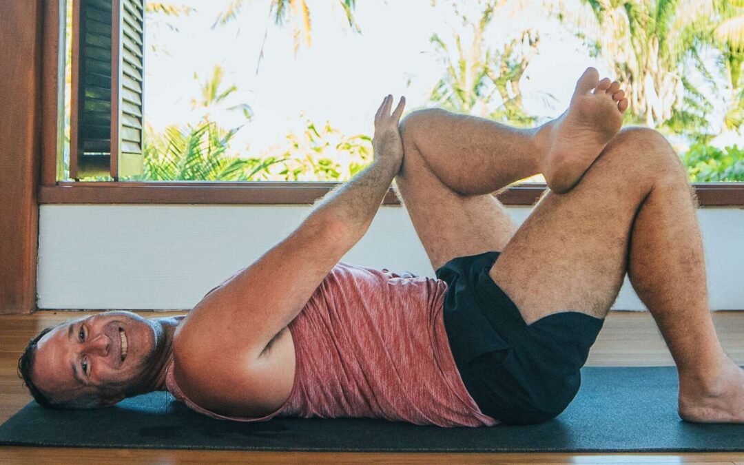Yogi Aaron doing AYAMA technique to activate the psoas muscle in the yoga shala at Blue Osa Yoga Retreat